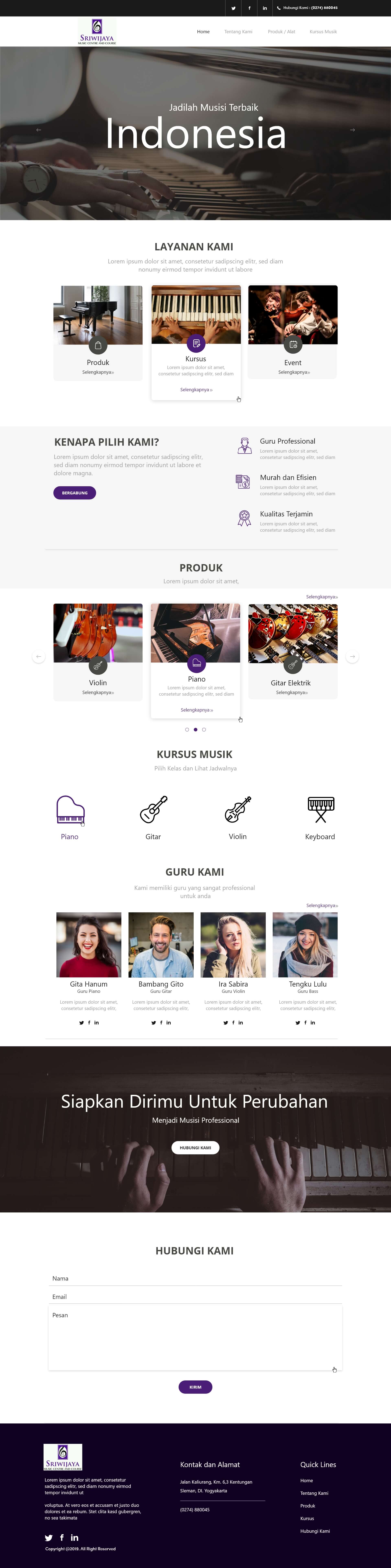 Creating consumer easy-to-understand about the company profile, services, etc. A lot of the time, users don't know how to get information about music course and instrument sales. I solved this issue by make beautiful landing page with the target user of millenials