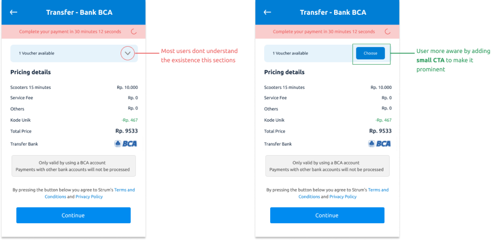 I did Direct UT to people in the office and friends of the community. The advantage of direct UT is that we can see how their facial expressions and their movements when using the application in this prototype directly. To strengthen the testing of this application, I also did Remote UT via Maze. These tools are very helpful for giving MVP journey feedback and some responses regarding the design.So far, according to the user, this application is quite good, but one thing become pain point in the “add voucher” section:
